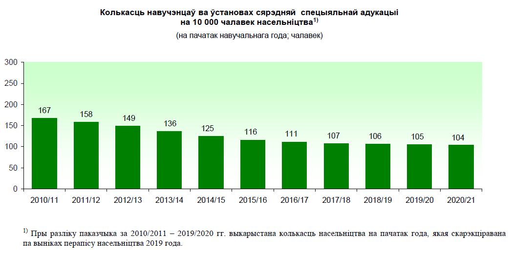 Колькасць навучэнцаў ва ўстановах сярэдняй спецыяльнай адукацыі на 10 000 чалавек насельніцтва