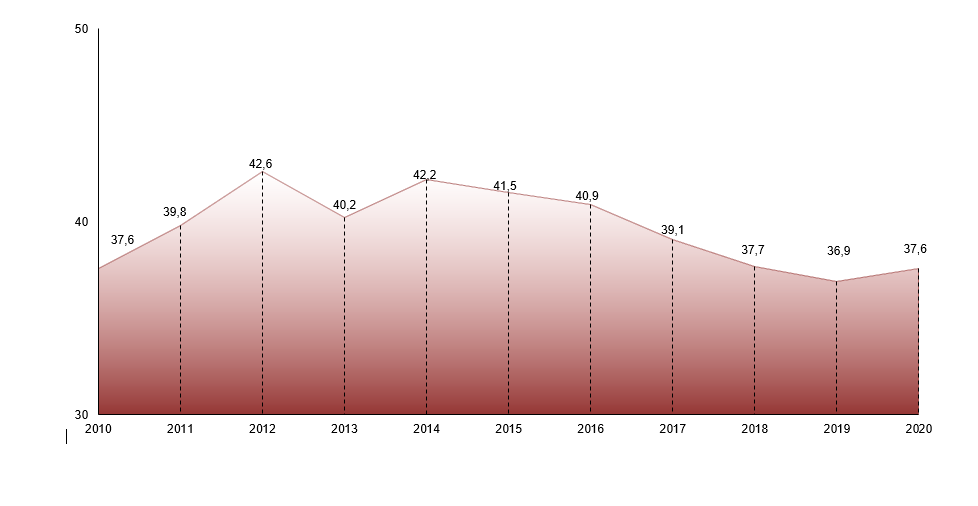 (па даных выбарачнага абследавання дамашніх гаспадарак па ўзроўні жыцця; у працэнтах да спажывецкіх выдаткаў)