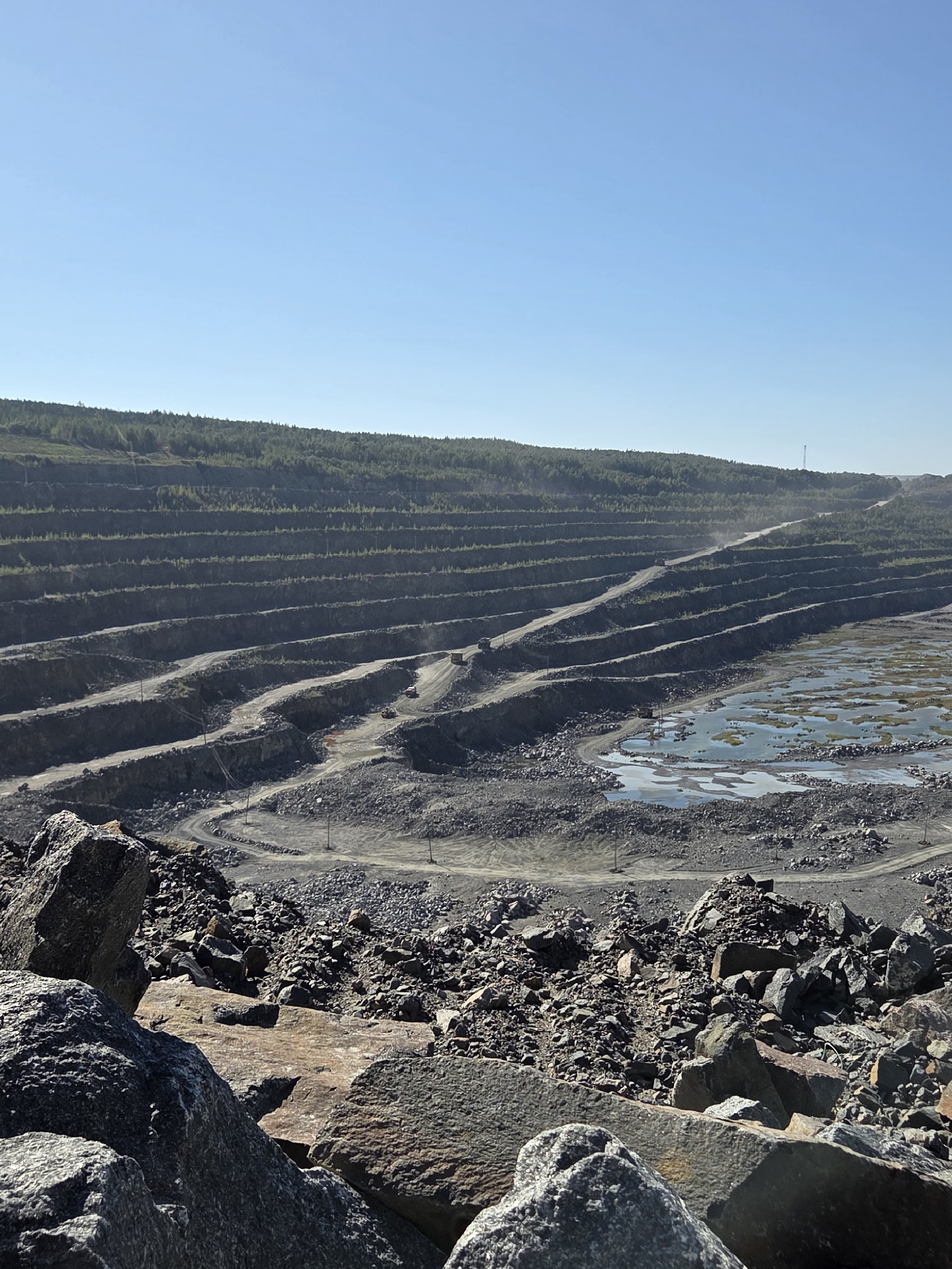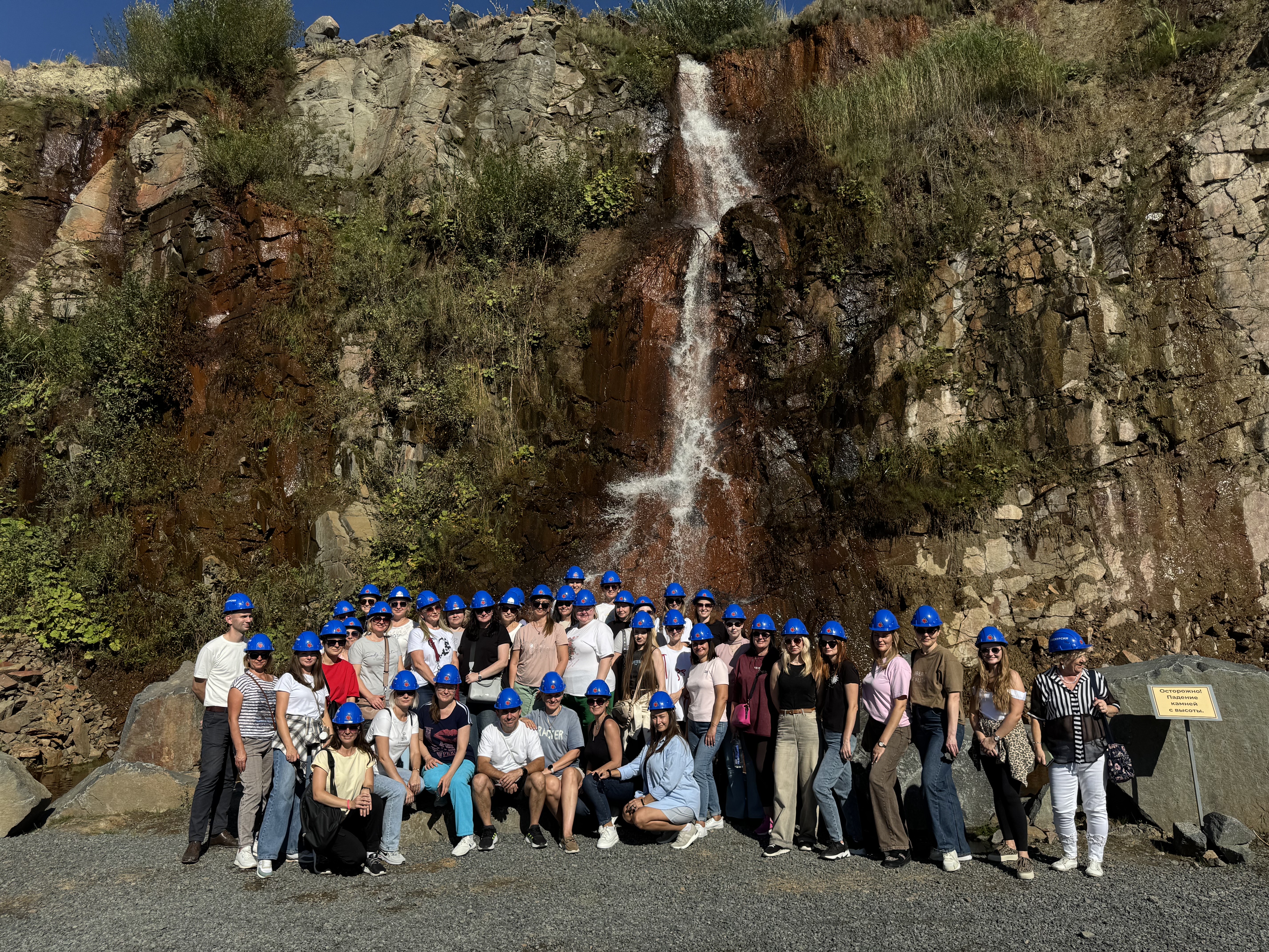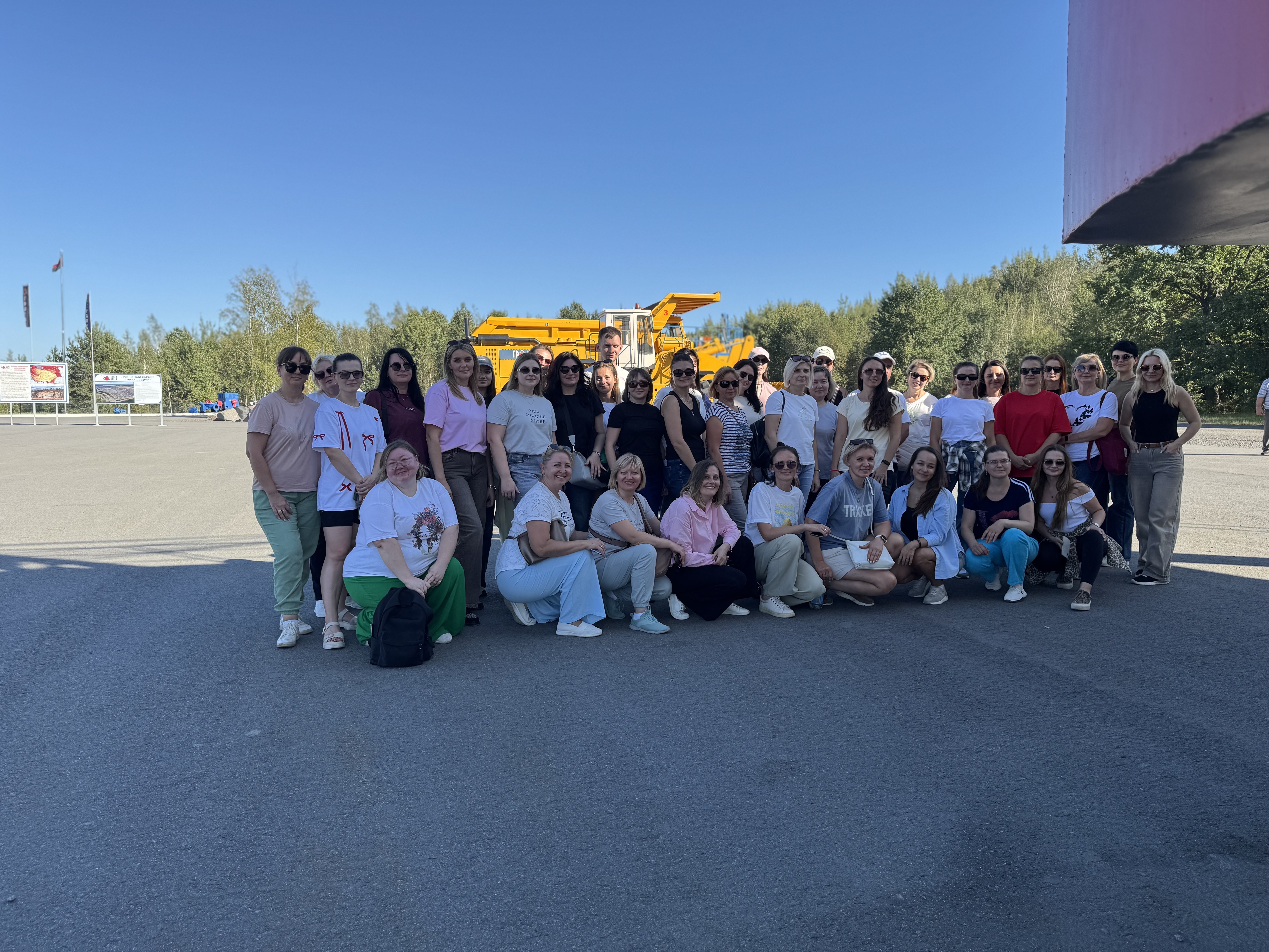 На экскурсии сотрудники смогли подняться на смотровую площадку, чтобы увидеть процесс добычи и транспортировки гранитной породы, посетить выставку техники, используемой на предприятии: буровые установки, экскаваторы и гигантские самосвалы.